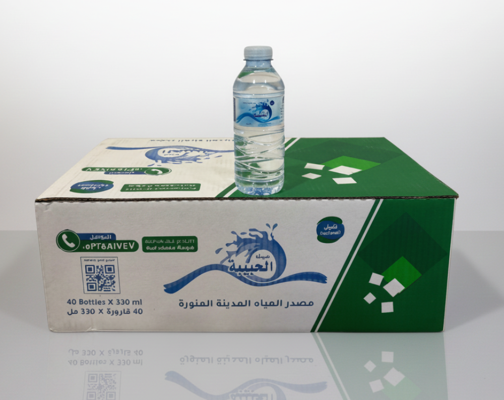 كفاءة التوزيع: الحجم الصغير (330 مل) يضمن تقليل هدر المياه إلى أدنى حد ممكن عند التوزيع، مما يعزز كفاءة الصدقات الجارية في المساجد والمراكز الخيرية.