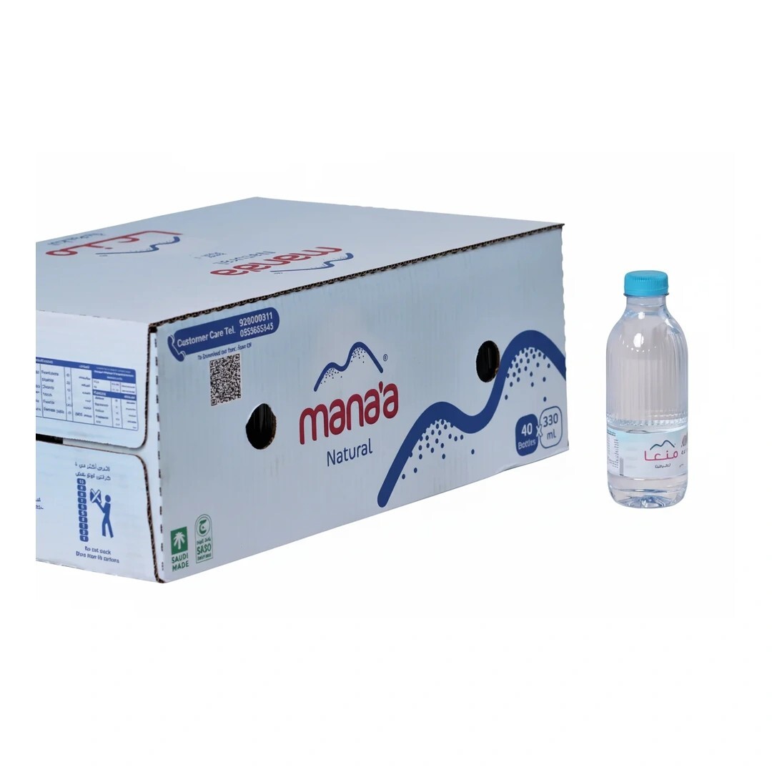 كرتون موية منعا 330 مل (40 عبوة)، رفيقك اليومي للانتعاش وضمان أن ثلاجة بيتك عامرة دائماً بالخير.